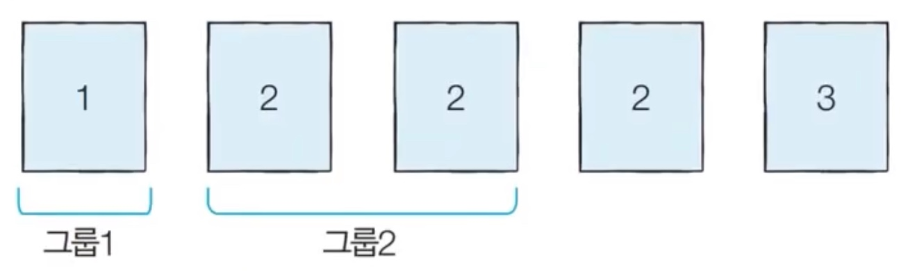 - 이 경우 그룹 1에 공포도가 1, 2, 3인 모험가를 한 명씩 넣고, 그룹 2에 공포도가 2인 남은 두 명을 넣게 되면 총 2개의 그룹을 만들 수 있습니다.