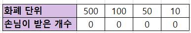# 큰 단위의 화폐부터 차례대로 확인하기