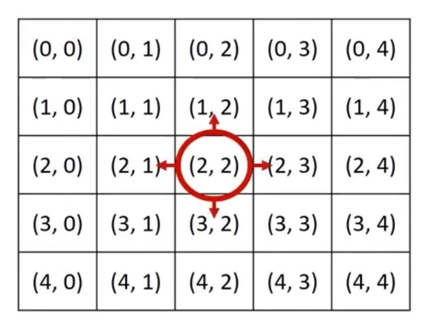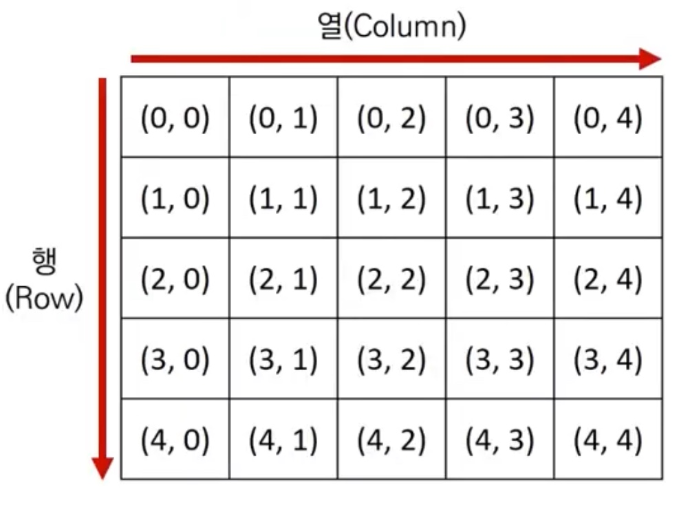 - 일반적으로 알고리즘 문제에서의 2차원 공간은 행렬(Matrix)의 의미로 사용된다.