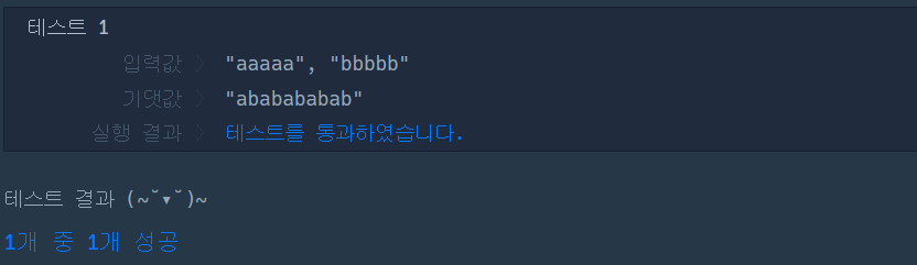 두 문자열의 각 문자가 앞에서부터 서로 번갈아가면서 한 번씩 등장하는 문자열을 만들어 return 하는 solution 함수를 완성해 주세요.