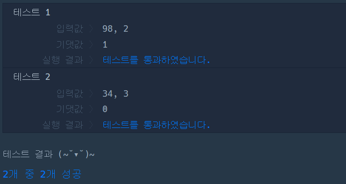 정수 num과 n이 매개 변수로 주어질 때, num이 n의 배수이면 1을 return n의 배수가 아니라면 0을 return하도록 solution 함수를 완성해 주세요.