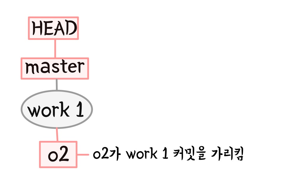 4. o2 브랜치를 만든다. o2 브랜치는 만들어 지면서 master 브랜치의 최신 커밋을 가져온다. 즉, 브랜치 양쪽에 work.txt가 있다.