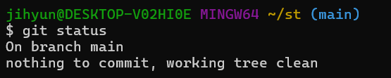 7. git status 명령을 실행하면 조금 전에 나타났던 modified 메시지가 사라진다.