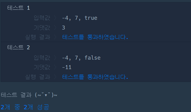 예제 2번에서 flag가 false이므로 a - b = (-4) - 7 = -11을 return합니다.